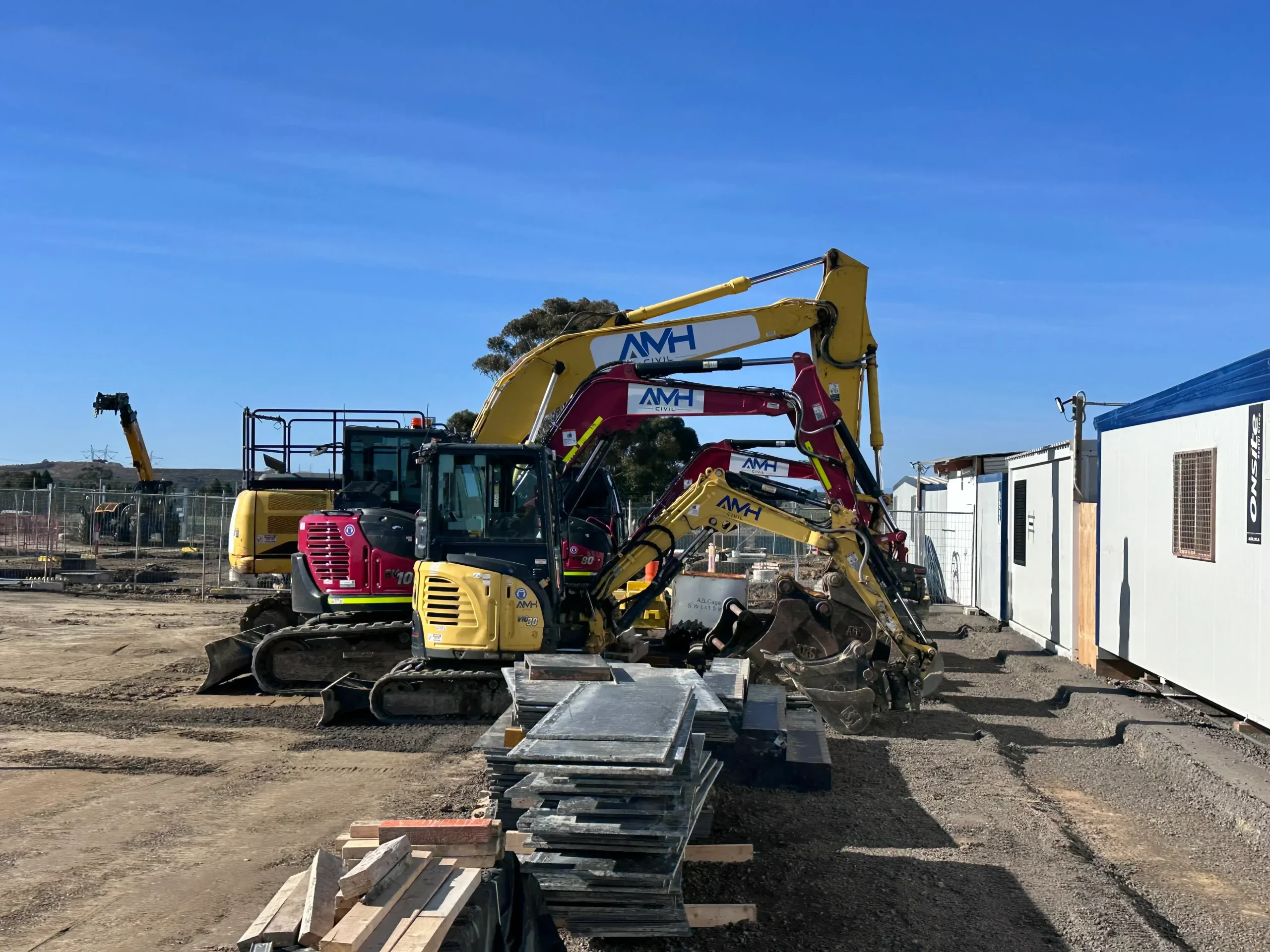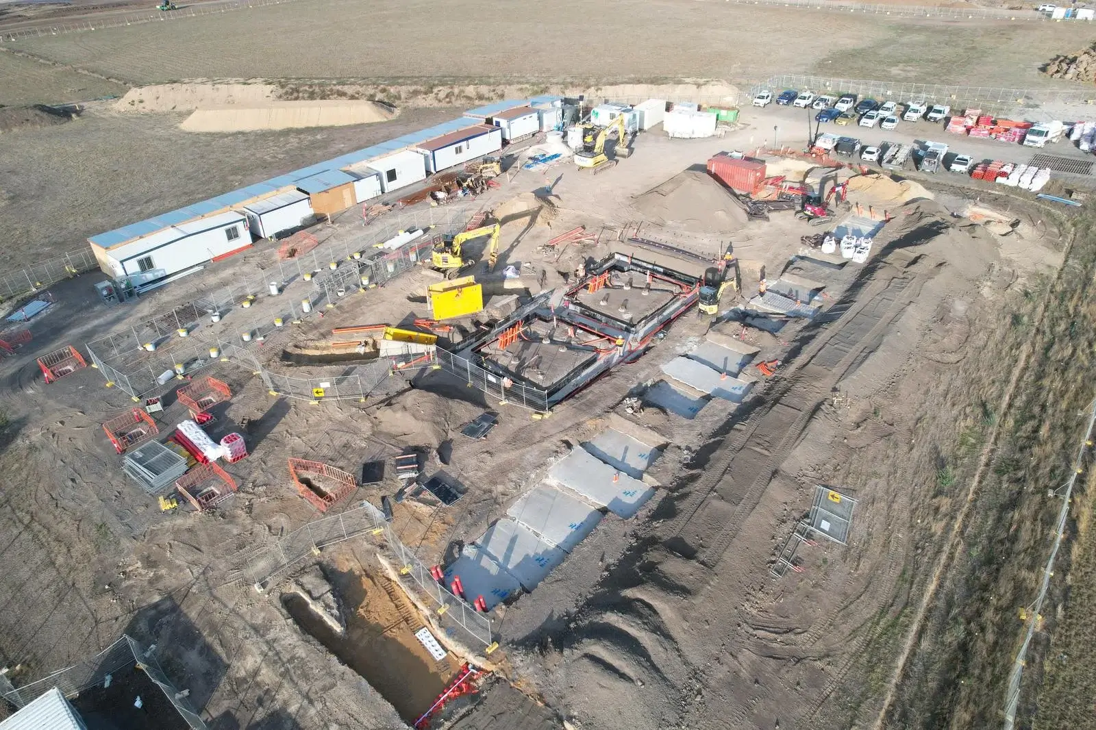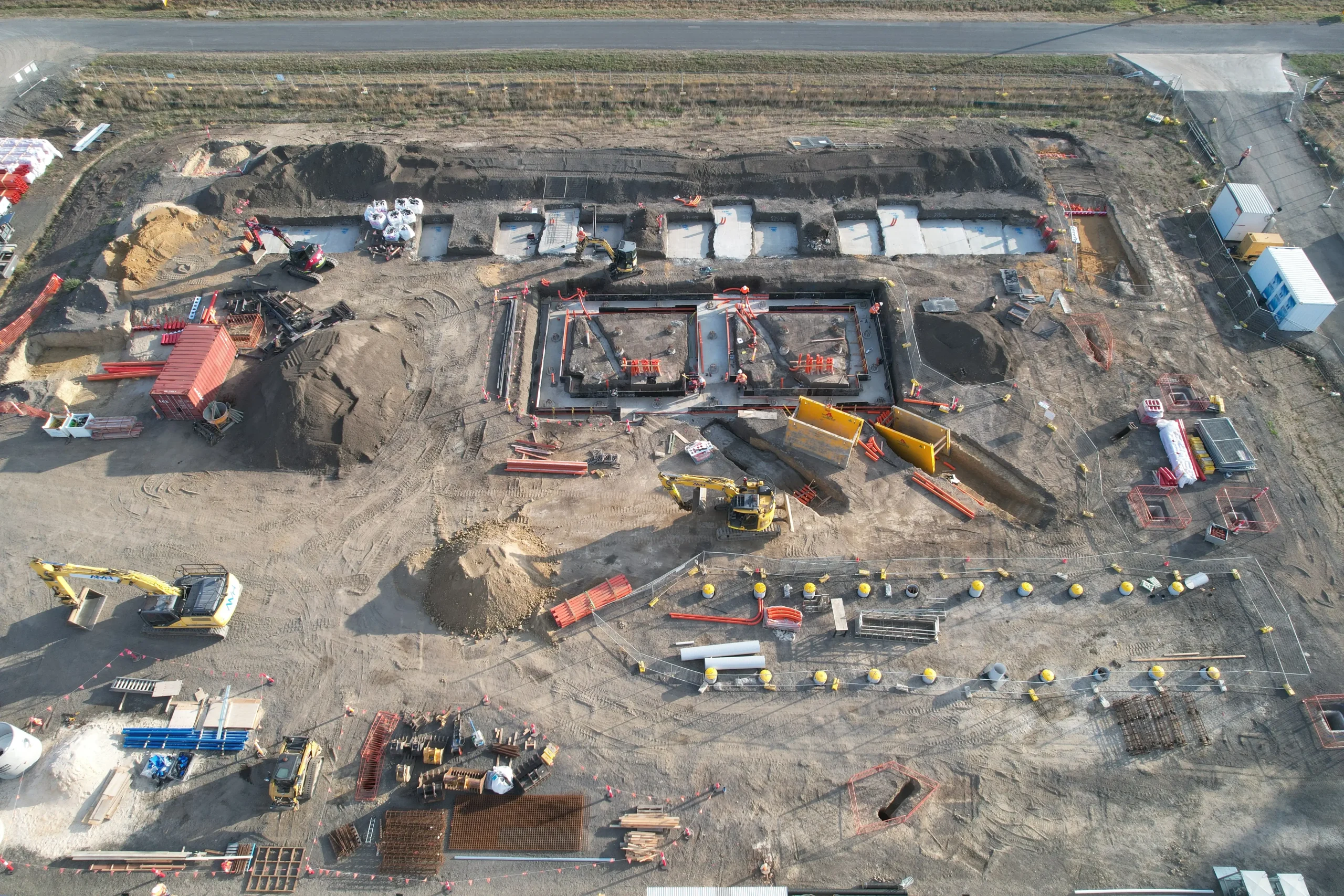 Acting as Head Contractor works involved bulk earthworks, deep reinstatement of existing unsuitable subgrade, piled footings, concrete structures, utility service connections, building installations, and tilt up blast wall erection.